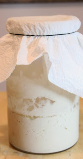 To make my bread recipe into a "soured" bread is very easy. All you have to do is add 1/4 cup of sourdough starter instead of the yeast and leave the bread for at least 16 hours to "sour". But where to get a sourdough starter? Right from your own kitchen. That's right, sourdough started is very easy to make. It will keep indefinitely as long as you feed it regularly and take good cake of it. So how you make it? OK, now for the exciting part ....
